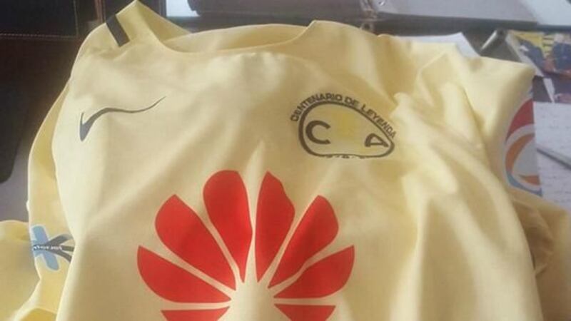 Asimismo, la camiseta cuenta con un cuello redondo y detalles en negro, como el escudo del equipo de Coapa que en su interior muestra un color claro y sólo con las letras 'CA' en negro.