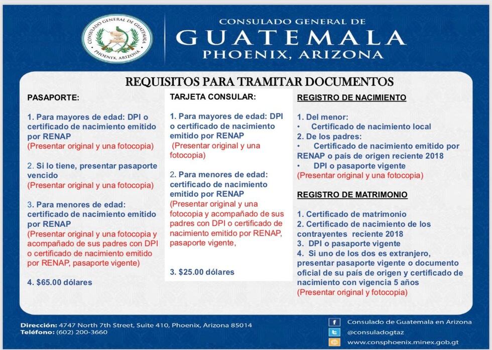 El consulado móvil estará el sábado 21 y domingo 22 de Julio de 9 AM a 4 PM, en la iglesia Bautista Belen en el bloque 820 al norte de la calle Reid.