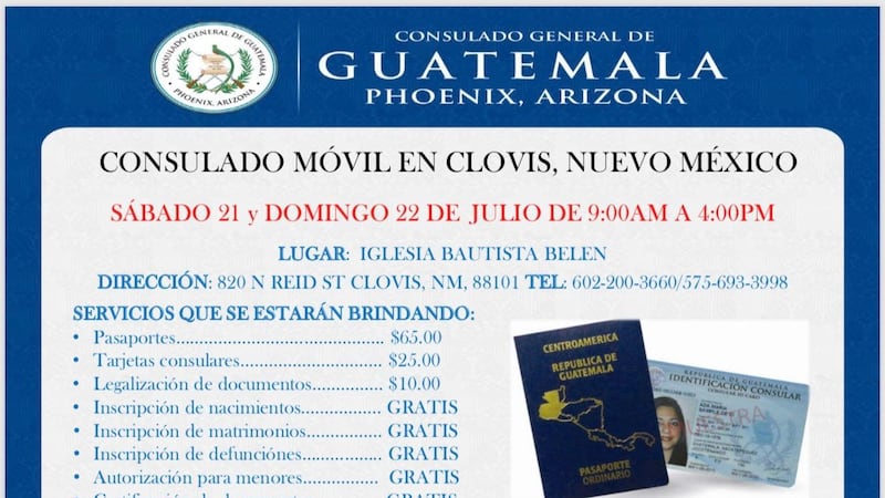 El Consulado General de Guatemala estará el proximo fin de semana en Clovis, Nuevo Mexico